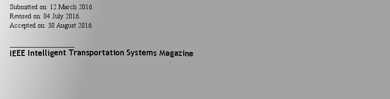 Submitted on: 03 August 2016. Revised on: 15 November 2016. Accepted on: 01 January 2017. ___________________IEEE Intelligent Transportation Systems Magazine