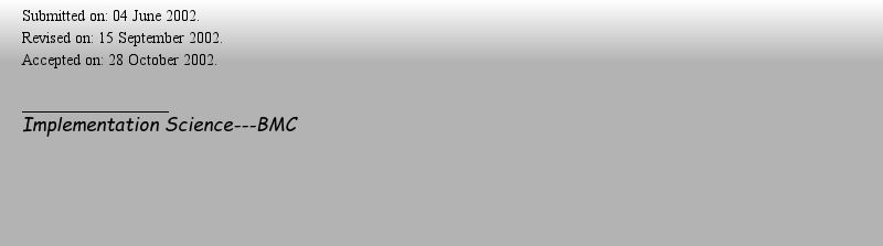 | 期刊全称 | Implementation Science | | 期刊简称 | IMPLEMENT SCI | | 影响因子2024 | 8.834 | | 视频video | http://file.papertrans.cn/13/12302/12302.mp4 | | ISSN | 1748-5908 | | eISSN | 1748-5908 | | 出版商 | BMC | | 发行地址 | CAMPUS, 4 CRINAN ST, LONDON, ENGLAND, N1 9XW | | 学科分类 | 1.Science Citation Index Expanded (SCIE)--Health Care Sciences & Services; 2.Social Sciences Citation Index (SSCI)--Health Policy & Services; 3.Current Contents Clinical Medicine--Health Care Sciences & Services; 4.Current Contents Social And Behavioral Sciences--Public Health & Health Care Science; 5.Essential Science Indicators--Social Sciences, General; | | 出版语言 | English |
