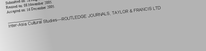 Submitted on: 11 February 2001. Revised on: 01 May 2001. Accepted on: 02 June 2001. ___________________Inter-Asia Cultural Studies---ROUTLEDGE JOURNALS, TAYLOR & FRANCIS LTD