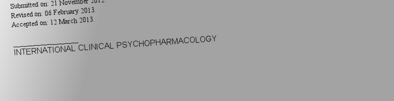 | 期刊全称 | INTERNATIONAL CLINICAL PSYCHOPHARMACOLOGY | | 期刊简称 | INT CLIN PSYCHOPHARM | | 影响因子2024 | 2.115 | | 视频video | http://file.papertrans.cn/13/12841/12841.mp4 | | ISSN | 0268-1315 | | eISSN | 1473-5857 | | 出版商 | LIPPINCOTT WILLIAMS & WILKINS | | 发行地址 | TWO COMMERCE SQ, 2001 MARKET ST, PHILADELPHIA, USA, PA, 19103 | | 学科分类 | 1.Science Citation Index Expanded (SCIE)--Pharmacology & Pharmacy | Psychiatry; 2.Biological Abstracts--Pharmacology & Pharmacy | Psychiatry; 3.BIOSIS Previews_BIOSIS Citation Index--Pharmacology & Pharmacy | Psychiatry; 4.Current Contents Clinical Medicine--Pharmacology/Toxicology; 5.Current Contents Life Sciences--Neurosciences & Behavior; 6.Essential Science Indicators--Neuroscience & Behavior; | | 出版语言 | English |
