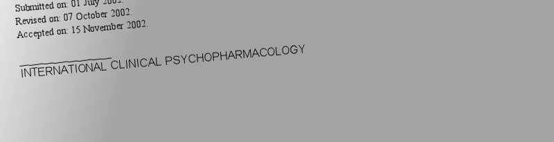 SCIE期刊INTERNATIONAL CLINICAL PSYCHOPHARMACOLOGY 2024/2025影响因子:2.115 (INT CLIN PSYCHOPHARM) (0268-1315). (PSYCHIATRY)(精神 |