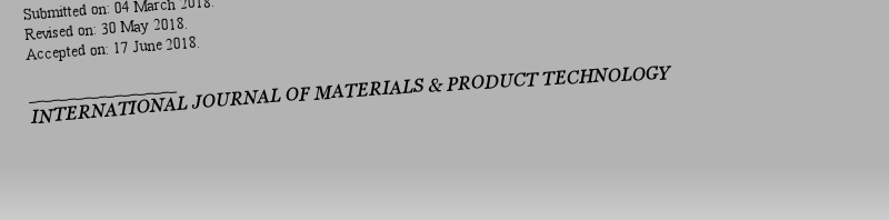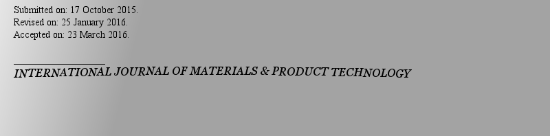 Submitted on: 06 May 2018. Revised on: 23 August 2018. Accepted on: 13 October 2018. ___________________INTERNATIONAL JOURNAL OF MATERIALS & PRODUCT TECHNOLOGY