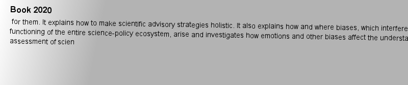 | 期刊全称 | A Bias Radar for Responsible Policy-Making | | 期刊简称 | Foresight-Based Scie | | 影响因子2023 | Lieve Van Woensel | | 视频video | http://file.papertrans.cn/141/140044/140044.mp4 | | 发行地址 | Argues that emotions affect the understanding of scientific evidence.Examines how foresight thinking can anticipate the impact of scientific developments and emerging technologies on citizens’ lives.D | | 学科分类 | St Antony‘s Series | | 图书封面 |  | | 影响因子 | Policymakers prepare society for the future and this book provides a practical toolkit for preparing pro-active, future-proof scientific policy advice for them. It explains how to make scientific advisory strategies holistic. It also explains how and where biases, which interfere with the proper functioning of the entire science-policy ecosystem, arise and investigates how emotions and other biases affect the understanding and assessment of scientific evidence. The book advocates explorative foresight, systems thinking, interdisciplinarity, bias awareness and the anticipation of undesirable impacts in policy advising, and it offers practical guidance for them. Written in an accessible style, the book offers provocative reflections on how scientific policy advice should be sensitive to more than scientific evidence. It is both an appealing introductory text for everyone interested in science-based policy and a valuable guide for the experienced scientific adviser and policy scholar.."This book is a valuable read for all stakeholders in the scientific advisory ecosystem. Lieve Van Woensel offers concrete methods to bridge the gap between scientific advice and policy making, to assess | | Pindex | Book 2020 |