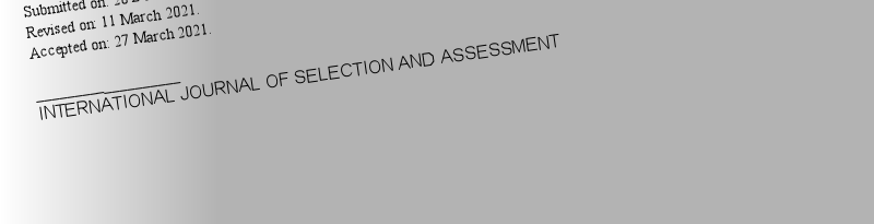 | 期刊全称 | INTERNATIONAL JOURNAL OF SELECTION AND ASSESSMENT | | 期刊简称 | INT J SELECT ASSESS | | 影响因子2024 | 2.608 | | 视频video | http://file.papertrans.cn/15/14089/14089.mp4 | | ISSN | 0965-075X | | eISSN | 1468-2389 | | 出版商 | WILEY | | 发行地址 | 111 RIVER ST, HOBOKEN, USA, NJ, 07030-5774 | | 学科分类 | 1.Social Sciences Citation Index (SSCI)--Psychology, Applied | Management; 2.Current Contents Business Collection--Employee Relations & Human Resources; 3.Current Contents Social And Behavioral Sciences--Psychology; 4.Essential Science Indicators--Psychiatry/Psychology; | | 出版语言 | English |