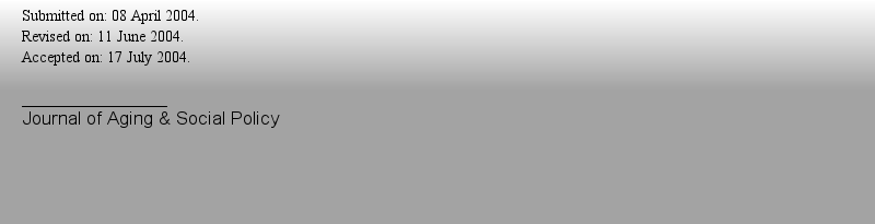 | 期刊全称 | Journal of Aging & Social Policy | | 期刊简称 | J AGING SOC POLICY | | 影响因子2024 | 2.129 | | 视频video | http://file.papertrans.cn/16/15145/15145.mp4 | | ISSN | 0895-9420 | | eISSN | 1545-0821 | | 出版商 | ROUTLEDGE JOURNALS, TAYLOR & FRANCIS LTD | | 发行地址 | 2-4 PARK SQUARE, MILTON PARK, ABINGDON, ENGLAND, OXON, OX14 4RN | | 学科分类 | 1.Social Sciences Citation Index (SSCI)--Gerontology; 2.Current Contents Social And Behavioral Sciences--Public Health & Health Care Science; 3.Essential Science Indicators--Social Sciences, General; | | 出版语言 | English |
