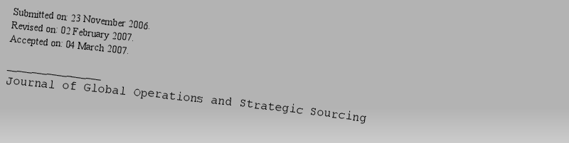 Submitted on: 20 August 2008. Revised on: 16 November 2008. Accepted on: 21 December 2008. ___________________Journal of Global Operations and Strategic Sourcing