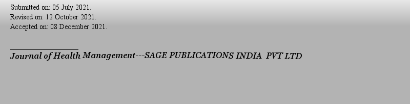 Submitted on: 27 July 2021. Revised on: 24 August 2021. Accepted on: 09 October 2021. ___________________Journal of Health Management---SAGE PUBLICATIONS INDIA PVT LTD