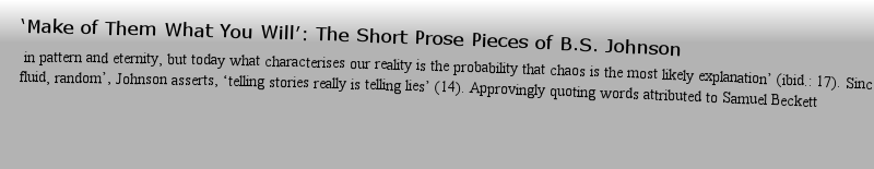 Titlebook: B S Johnson and Post-War Literature; Possibilities of the Julia Jordan (Lecturer),Martin Ryle (Header) Book 2014 Palgrave Macmillan, a divi |