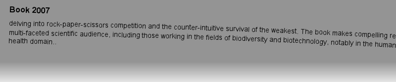| 期刊全称 | Bacteriocins | | 期刊简称 | Ecology and Evolutio | | 影响因子2023 | Margaret A. Riley,Milind A. Chavan | | 视频video | http://file.papertrans.cn/181/180340/180340.mp4 | | 发行地址 | Fascinating story about the evolutionary histories of bacteriocins and the ecological roles of these biological weapons in microbial communities.Of utmost interest because of the potential utility in | | 图书封面 |  | | 影响因子 | .Microbes produce an extraordinary array of defense systems. These include bacteriocins, a class of antimicrobial molecules with narrow killing spectra, produced by bacteria. The book describes the diversity and ecological role of bacteriocins of Gram-positive and Gram-negative bacteria, presenting a new classification scheme for the former and a state-of-the-art look at the role of bacteriocins in bacterial communication. It discusses the molecular evolution of colicins and colicin-like bacteriocins, and provides a contemporary overview of archaeocins, bacteriocin-like antimicrobials produced by archaebacteria. Furthermore, various modeling (in silico) studies elucidate the role of bacteriocins in microbial community dynamics and fitness, delving into rock-paper-scissors competition and the counter-intuitive survival of the weakest. The book makes compelling reading for a multi-faceted scientific audience, including those working in the fields of biodiversity and biotechnology, notably in the human and animal health domain.. | | Pindex | Book 2007 |
