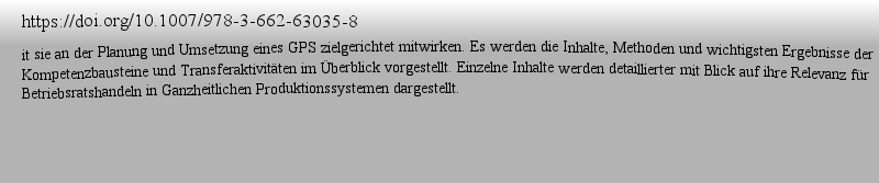 | 期刊全称 | Balanced GPS | | 期刊简称 | Ganzheitliche Produk | | 影响因子2023 | Wolfgang Kötter,Martin Schwarz-Kocher,Christoph Za | | 视频video | http://file.papertrans.cn/181/180429/180429.mp4 | | 发行地址 | Strategische Ergänzungsbausteine für Ganzheitliche Produktionssysteme.Darstellung eines neuartigen Prozesses zur Herstellung von arbeitspolitischer Balance im Unternehmen.Mit Leitlinien, Checklisten u | | 图书封面 |  | | 影响因子 | Bei der Einführung von Ganzheitlichen Produktionssystemen (GPS) steht bislang die Standardisierung und Vereinheitlichung von Arbeitsmethoden und Arbeitsabläufen im Vordergrund. Dies zeigt sich sowohl in der betrieblichen Praxis als auch in der wissenschaftlichen Diskussion rund um GPS. Die Autoren entwickeln GPS zu einem Managementsystem weiter, mit dem zum einen die Balance von Flexibilität und Stabilität gezielt gefördert wird und zum anderen die Beschäftigten aktiv einbezogen, ihre Kompetenzen genutzt und ihre berechtigten Anliegen angemessen berücksichtigt werden. Damit wird ein völlig neuartiger Prozess zur Herstellung von arbeitspolitischer Balance im Unternehmen vorgestellt. Neben der Darstellung eines Lernprogramms für produktionsnahe Führungskräfte zur Sozial-, Kommunikations- und Konfliktkompetenz enthält das Buch auch neue Ansätze zur strategieorientierten Planung von Ganzheitlichen Produktionssystemen. Die Erkenntnisse sind anschaulich in Fallbeispielen dargestellt und vielfach um Leitlinien und Checklisten zur leichteren Umsetzung der Erkenntnisse in die Praxis ergänzt. | | Pindex | Book 2016 |