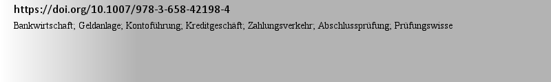 | 期刊全称 | Bankwirtschaft, Rechnungswesen und Steuerung, Wirtschafts- und Sozialkunde | | 期刊简称 | Prüfungswissen in Üb | | 影响因子2023 | Wolfgang Grundmann,Rudolf Rathner | | 视频video | http://file.papertrans.cn/181/180795/180795.mp4 | | 发行地址 | Alle Prüfungsthemen auf jeweils einen Blick - ideal zum Wiederholen und zur Festigung des Prüfungsstoffs.Ideale Ergänzung zu den Aufgaben-Büchern von Wolfgang Grundmann und Rudolf Rathner.Erstellt auf | | 学科分类 | Prüfungstraining für Bankkaufleute | | 图书封面 |  | | 影响因子 | .Dieses Buch bietet den kompletten, für die Abschlussprüfung relevanten Lernstoff in Form von knappen tabellarischen Übersichten und übersichtlichen Grafiken für alle drei Prüfungsfächer. Die Auszubildenden können somit gezielt Wissenslücken schließen und sich die wesentlichen Inhalte merken - ohne dass überflüssiger Ballast stört. Somit ist dieses Buch eine ideale Ergänzung zu den bislang erschienenen Bänden von Wolfgang Grundmann und Rudolf Rathner, in denen die angehenden Bankkaufleute erworbenes Wissen mit Hilfe von Aufgaben trainieren können. Grundlage dieser Zusammenstellung sind die Stoffkataloge für die Abschlussprüfung. Für diese Neuauflage haben die Autoren das Buch neu bearbeitet und auf den rechtlich aktuellen Stand gebracht. Grundlage der 9. Auflage waren die überarbeiteten Inhalte des neuen Prüfungskatalogs für den Ausbildungsberuf Bankkaufmann/Bankkauffrau. Das Kapitel Online-Banking wurde um sichere TAN-Verfahren ergänzt und erweitert. Neu hinzu gekommen sind die aktuellen Informationen zu den Sicherheitsvorschriften bei Internetkäufen mit Kreditkartenzahlungen nach dem Zwei-Faktoren-Authentifizierungsverfahren. Die Inhalte zum Pfändungsschutzkonto verweisen bereits | | Pindex | Textbook 202311th edition |