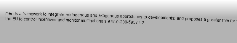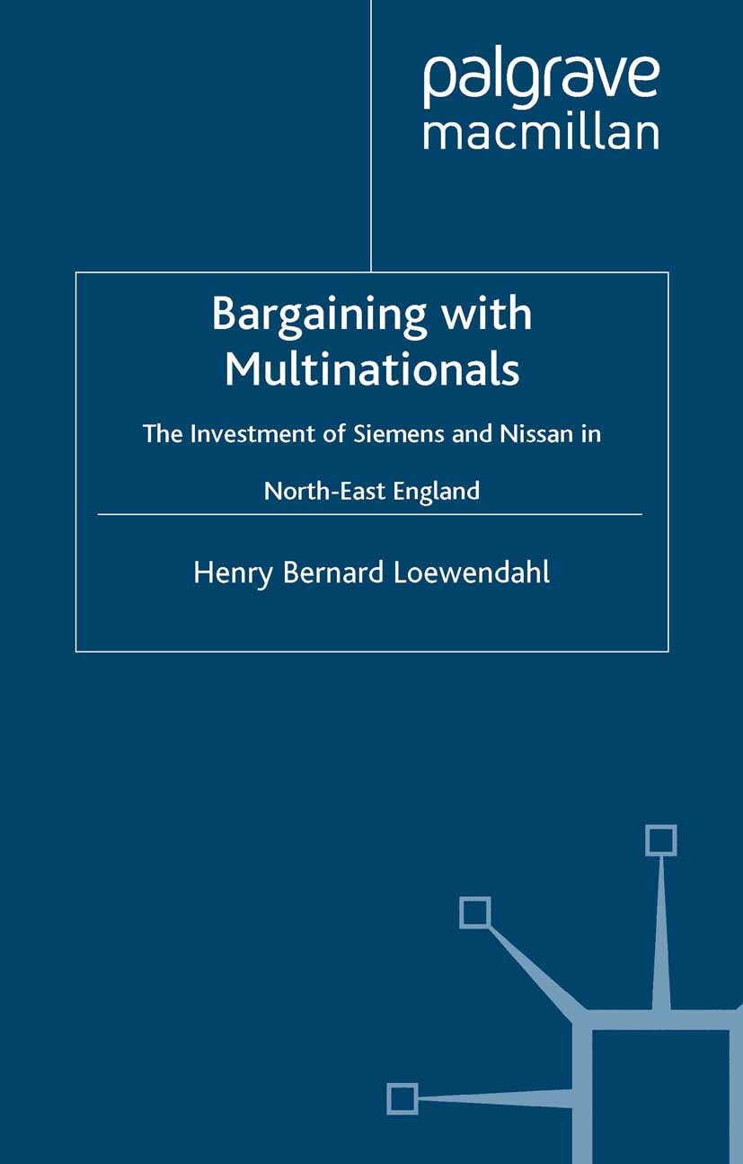 期刊全称 | Bargaining with Multinationals | 期刊简称 | The Investment of Si | 影响因子2023 | Henry Bernard Loewendahl | 视频video | http://file.papertrans.cn/181/180832/180832.mp4 | 图书封面 |  | 影响因子 | In Bargaining with Multinationals , Loewendahl scrutinises the relationship between multinational companies, regional development and governments, using an international political economy framework of bargaining between government and multinationals. He critically analyses the role of foreign investment in economic development, and examines how governments can link inward investment to regional economic development. Based on extensive use of data, interviews and case studies of Siemens and Nissan‘s UK investment, the book shows why MNCs have invested in the UK in the past, how they bargained with the government, and what the impact was on the national and regional economies. In particular, through linking the strategy of multinationals to the location advantages of the UK, it is argued that labour flexibility and incentives were crucial to investment decisions. Loewendahl recommends a framework to integrate endogenous and exogenous approaches to developments; and proposes a greater role for the region and the EU to control incentives and monitor multinationals. | Pindex | Book 2001 |