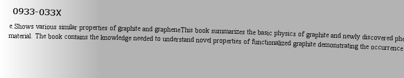 | 期刊全称 | Basic Physics of Functionalized Graphite | | 影响因子2023 | Pablo D. Esquinazi | | 视频video | http://file.papertrans.cn/182/181094/181094.mp4 | | 发行地址 | Presents newly discovered phenomena of ferromagnetism order and superconductivity.Covers the application potential of functionalized graphite.Shows various similar properties of graphite and graphene | | 学科分类 | Springer Series in Materials Science | | 图书封面 |  | | 影响因子 | This book summarizes the basic physics of graphite and newly discovered phenomena in this material. The book contains the knowledge needed to understand novel properties of functionalized graphite demonstrating the occurrence of remarkable phenomena in disordered graphite and graphite-based heterostructures. It also discusses applications of thin graphitic samples in future electronics. Graphite consists of a stack of nearly decoupled two-dimensional graphene planes. Because of the low dimensionality and the presence of Dirac fermions, much of graphite physics resembles that of graphene. On the other hand, the multi-layered nature of the graphite structure together with structural and/or chemical disorder are responsible for phenomena that are not observed yet in graphene, such as ferromagnetic order and superconductivity. Each chapter was written by one or more experts in the field whose contributions were relevant in the (re)discovery of (un)known phenomena in graphite. The book is intended as reference for beginners and experts in the field, introducing them to many aspects of the new physics of graphite, with a fresh overview of recently found phenomena and the theoretical fram | | Pindex | Book 2016 |