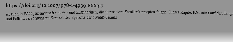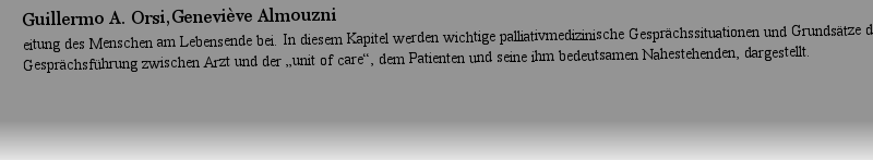 | 期刊全称 | Basiswissen Palliativmedizin | | 影响因子2023 | Martin W. Schnell,Christian Schulz-Quach | | 视频video | http://file.papertrans.cn/182/181383/181383.mp4 | | 发行地址 | Mit zahlreichen Fallbeispielen.Prüfungsteil mit Fragen, Antworten und Fällen | | 图书封面 |  | | 影响因子 | .Übersichtlich und kompakt bietet Ihnen dieses Lehrbuch einen vollständigen Überblick über alle prüfungsrelevanten Inhalte der Palliativmedizin. Es leitet Sie leicht verständlich und GK-orientiert durch das gesamte Basiswissen und beinhaltet die Therapie, Versorgung und Begleitung Sterbender, sowie besondere Situation wie z.B. Notfallsituationen, der Umgang mit Kindern und LSBTI. Profitieren Sie von der langjährigen Erfahrung der Dozenten, die sorgfältig das Wesentliche für Sie ausgewählt und aufbereitet haben...Der Inhalt..Das bewährte didaktische Konzept ermöglicht ein effizientes Lernen:..· Prüfungsteil – Für eine optimale Vorbereitung auf MC-Fragen und Fallstudien..· Kernaussagen – Bringen das Wichtigste auf den Punkt..· Fallbeispiele – Stellen einen anschaulichen Bezug zur Praxis her.· 29 Videos über die kostenlose MoreMediaApp – Geben einen Einblick in die Arzt- und Patientensituation. | | Pindex | Textbook 2019Latest edition |