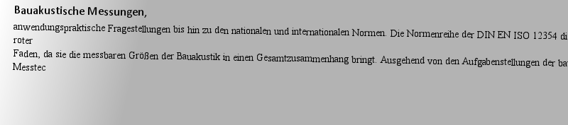 Titlebook: Bauakustische Messungen; Michael Möser Book 2018 Springer-Verlag GmbH Deutschland, ein Teil von Springer Nature 2018 Luftschalldämmung und |