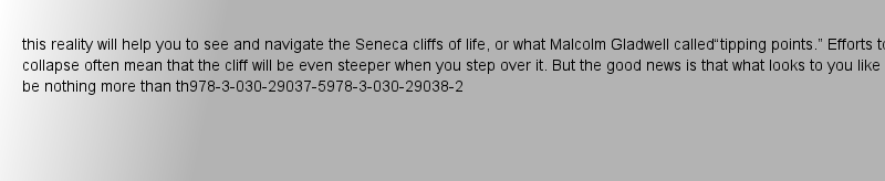 | 期刊全称 | Before the Collapse | | 期刊简称 | A Guide to the Other | | 影响因子2023 | Ugo Bardi | | 视频video | http://file.papertrans.cn/183/182144/182144.mp4 | | 图书封面 |  | | 影响因子 | Nobody has to tell you that when things go bad, they go bad quickly and seemingly in bunches. Complicated structures like buildings or bridges are slow and laborious to build but, with a design flaw or enough explosive energy, take only seconds to collapse. This fate can befall a company, the stock market, or your house or town after a natural disaster, and the metaphor extends to economies, governments, and even whole societies. As we proceed blindly and incrementally in one direction or another, collapse often takes us by surprise. We step over what you will come to know as a “Seneca cliff”, which is named after the ancient Roman philosopher, Lucius Annaeus Seneca, who was the first to observe the ubiquitous truth that growth is slow but ruin is rapid. Modern science, like ancient philosophy, tell us that collapse is not a bug; it is a feature of the universe. Understanding this reality will help you to see and navigate the Seneca cliffs of life, or what Malcolm Gladwell called“tipping points.” Efforts to stave off collapse often mean that the cliff will be even steeper when you step over it. But the good news is that what looks to you like a collapse may be nothing more than th | | Pindex | Book 2020 |