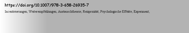 | 期刊全称 | Belohnungen für Online Reviews | | 期刊简称 | Unterschiedliche Eff | | 影响因子2023 | Ann-Kathrin‘Grötschel | | 视频video | http://file.papertrans.cn/184/183337/183337.mp4 | | 发行地址 | Eine wirtschaftswissenschaftliche Studie | | 学科分类 | Applied Marketing Science / Angewandte Marketingforschung | | 图书封面 |  | | 影响因子 | .Auf Basis sozialpsychologischer Theorien leitet Ann-Kathrin Grötschel Hypothesen zu den Wirkungen von Belohnungsangeboten für das Verfassen von Online Reviews her. Die aufgestellten Hypothesen werden mit einer offenen Befragung und zwei experimentellen Studien empirisch überprüft. Die Ergebnisse der Studien zeigen die zugrundeliegenden psychologischen Effekte sowie die resultierenden Verhaltensabsichten der angesprochenen Kunden. Ein Belohnungsangebot steigert die Online-Review-Abgabewahrscheinlichkeit, während sich die positiven und negativen Effekte auf die Online-Review-Valenz gegenseitig aufheben.. | | Pindex | Book 2019 |