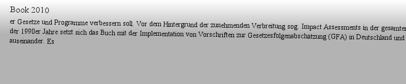 Titlebook: Bessere Gesetze durch Folgenabschätzung?; Deutschland und Schw Sylvia Veit Book 2010 VS Verlag für Sozialwissenschaften | Springer Fachmedi |