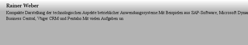 Titlebook: Betriebliche Anwendungssysteme; Modelle, Integration Rainer Weber Textbook 2021Latest edition Springer-Verlag GmbH Deutschland, ein Teil vo |