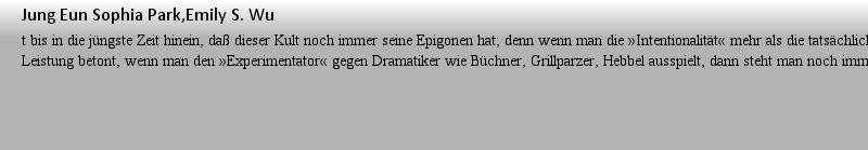 The Slipperiness of Improvementnicht würdelos, aber zu Zeiten sehr bestimmt, um eine zeitgemäße Wirkung bemüht. Er genießt daher traditionellerweise in unserer Literaturgeschichte nicht das Ansehen Mörikes oder der Droste. Wo das Originalitätsprinzip und die Frage nach der dauerhaften Leistung unserer Dichter Grundlagen der Beurt