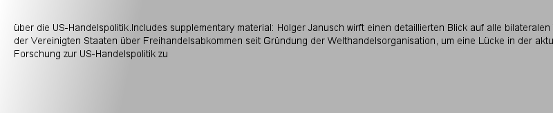 Titlebook: Bilaterale Verhandlungen der Vereinigten Staaten über Freihandelsabkommen; Von der Clinton-Ära Holger Janusch Book 2016 Springer Fachmedie |