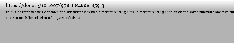 | 期刊全称 | Binding Phenomena | | 期刊简称 | General Description | | 影响因子2023 | Waldemar A. Marmisollé,Dionisio Posadas | | 视频video | http://file.papertrans.cn/187/186295/186295.mp4 | | 发行地址 | Introduces a unified description of binding equilibrium for multiple systems.Presents various types of titrations, i.e., acid base, redox and/or electron titrations.Employs molecular models to interpr | | 学科分类 | Physical Chemistry in Action | | 图书封面 |  | | 影响因子 | This book presents a unified description of binding equilibrium for a wide variety of systems focusing on acid-base and coordination chemistry, adsorption at interfaces, and electron binding in electrochemistry. It overviews more complex phenomena such as competitive binding to different sites and of different ligands. Multiple sites such as those occurring in macromolecules, colloidal oxides, humid substances, and proteins are briefly discussed and many experimental results for these types of systems are analyzed. Titrations and consideration of the distribution of binding constants are also presented. The book is mainly directed at undergraduate/graduate students of chemistry, biology, and earth sciences. It is supplementary to the standard physical and analytical chemistry courses and will help both students and teachers get a more in-depth knowledge and understanding of the systems analyzed. | | Pindex | Textbook 2023 |