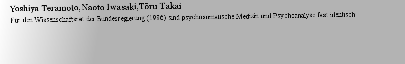 Experimentelle Persönlichkeitsforschung in Psychosomatischer Medizin und Psychoanalyse. Das BeispielFür den Wissenschaftsrat der Bundesregierung (1986) sind psychosomatische Medizin und Psychoanalyse fast identisch:
