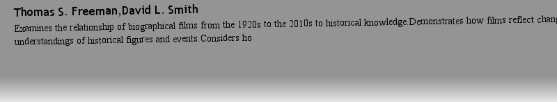 Titlebook: Biography and History in Film; Thomas S. Freeman,David L. Smith Book 2019 The Editor(s) (if applicable) and The Author(s) 2019 Cinema.Popu |