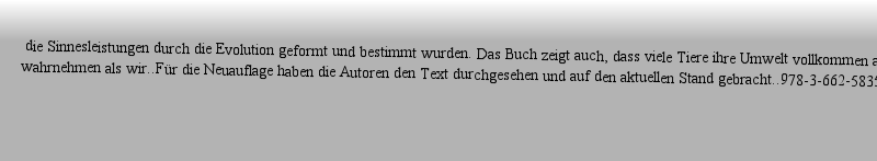 | 期刊全称 | Biologie der Sinne | | 期刊简称 | Vom Molekül zur Wahr | | 影响因子2023 | Stephan Frings,Frank Müller | | 视频video | http://file.papertrans.cn/188/187554/187554.mp4 | | 发行地址 | Umfassende Darstellung von der Funktionsweise einzelner Sinneszellen bis zu den Stärken und Tücken unserer Wahrnehmung.In allgemeinverständlicher, farbig illustrierter Darstellung, zugänglich jedem in | | 图书封面 |  | | 影响因子 | .Unsere Sinne - Sehen, Hören, Riechen, Schmecken und Tasten - bestimmen wesentlich unser Leben. Alles was wir wissen, wurde uns von unseren Sinnen vermittelt. Aber wie funktionieren unsere Sinne und wie kommt das Wissen über die Welt in unseren Kopf? Nach welchen Kriterien entscheidet unser Gehirn, was zu tun ist?.In diesem Sachbuch wird allgemeinverständlich dargelegt, wie hoch entwickelt die Sinnesorgane bei Tieren und Menschen sind. Oft erreichen Sinnesleistungen die Grenze des physikalisch Möglichen. Das Buch erklärt, wie Sinnesreize erfasst werden, wie sie in die Sprache des Nervensystems übersetzt werden und wie unser Gehirn Sinnesinformation verarbeitet. Das Gehirn setzt dabei auf wohl bewährte Strategien, die ein Ziel verfolgen: die Überlebenschance des Organismus zu erhöhen. Deshalb wird in diesem Buch gezeigt, wie sehr die Sinnesleistungen durch die Evolution geformt und bestimmt wurden. Das Buch zeigt auch, dass viele Tiere ihre Umwelt vollkommen anders wahrnehmen als wir..Für die Neuauflage haben die Autoren den Text durchgesehen und auf den aktuellen Stand gebracht.. | | Pindex | Book 2019Latest edition |