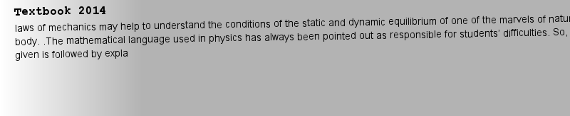 | 期刊全称 | Biomechanics of the Human Body | | 影响因子2023 | Emico Okuno,Luciano Fratin | | 视频video | http://file.papertrans.cn/188/187960/187960.mp4 | | 发行地址 | Teaches basic physics concepts, particularly involving forces, rotation and elasticity, using examples and problems based on the human body.Contains lab exercises that demonstrate the physics of the h | | 学科分类 | Undergraduate Lecture Notes in Physics | | 图书封面 |  | | 影响因子 | Biomechanics of the Human Body teaches basic physics concepts using examples and problems based on the human body. The reader will also learn how the laws of mechanics may help to understand the conditions of the static and dynamic equilibrium of one of the marvels of nature: the human body. .The mathematical language used in physics has always been pointed out as responsible for students’ difficulties. So, each concept given is followed by explanatory examples, with subsequent application and fixation exercises. It is a richly illustrated book that facilitates the comprehension of presented concepts. .Biomechanics of the Human Body can be useful to students of physical and occupational therapy, physical education, the life sciences, and health care professionals who deal with biomechanics. This book is also recommended for sport practitioners as well as the general reader interested in the mechanics of the human body. | | Pindex | Textbook 2014 |