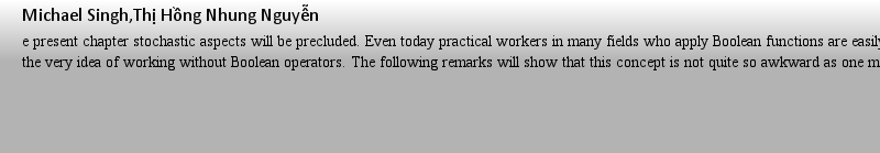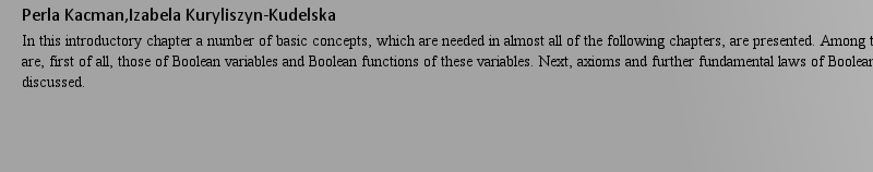 | 期刊全称 | Boolean Functions | | 期刊简称 | With Engineering App | | 影响因子2023 | Winfrid G. Schneeweiss | | 视频video | http://file.papertrans.cn/190/189779/189779.mp4 | | 图书封面 |  | | 影响因子 | Modern systems engineering (e. g. switching circuits design) and operations research (e. g. reliability systems theory) use Boolean functions with increasing regularity. For practitioners and students in these fields books written for mathe maticians are in several respects not the best source of easy to use information, and standard books, such as, on switching circuits theory and reliability theory, are mostly somewhat narrow as far as Boolean analysis is concerned. Further more, in books on switching circuits theory the relevant stochastic theory is not covered. Aspects of the probabilistic theory of Boolean functions are treated in some works on reliability theory, but the results deserve a much broader interpre tation. Just as the applied theory (e. g. of the Laplace transform) is useful in control theory, renewal theory, queueing theory, etc. , the applied theory of Boolean functions (of indicator variables) can be useful in reliability theory, switching circuits theory, digital diagnostics and communications theory. This book is aimed at providing a sufficiently deep understanding of useful results both in practical work and in applied research. Boolean variables are rest | | Pindex | Book 1989 |