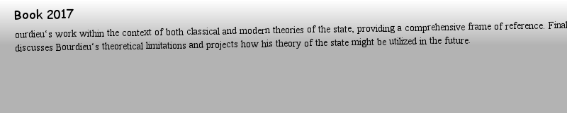 Titlebook: Bourdieu‘s Theory of the State; A Critical Introduct Steven Loyal Book 2017 The Editor(s) (if applicable) and The Author(s) 2017 philosophy |