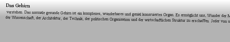| 期刊全称 | Brave New Brain | | 期刊简称 | Geist - Gehirn - Gen | | 影响因子2023 | Nancy C. Andreasen | | 视频video | http://file.papertrans.cn/191/190455/190455.mp4 | | 发行地址 | Hintergründe und Zusammenhänge der modernen biologischen Psychiatrie.Von der Entschlüsselung des Genoms bis zur Bildgebung.Informativ, verständlich und spannend geschrieben.Renommierte Autorin mit höc | | 图书封面 |  | | 影响因子 | Nancy Andreasen, führende Neurowissenschaftlerin, Herausgeberin des angesehenen American Journal of Psychiatry und ausgezeichnet mit der National Medal of Science, zeigt uns in ihrem neuen Buch die Zusammenhänge zwischen Gehirn und Genom. Dank modernster Methoden und Entdeckungen in Neurowissenschaften und Molekularbiologie wissen Forscher mehr denn je über die Funktionen des Gehirns. Die Autorin beschreibt auf faszinierende und verständliche Weise, wie alles zusammenhängt - von Milliarden kleinster Neuronen im Thalamus bis hin zur moralischen Kontrollinstanz im präfrontalen Kortex. Sie erklärt die Entschlüsselung des Genoms, dessen 30000-40000 Gene fast alle in irgendeiner Form in unserem Gehirn aktiv sind. In fesselnden Geschichten beleuchtet sie aber auch, wie sich psychische Störungen entwickeln und welche Auswirkungen sie auf Patienten und Angehörige haben. Nancy Andreasen gelingt der Brückenschlag zwischen hochkomplexen Inhalten und spannender Lektüre. | | Pindex | Book 2002 |
