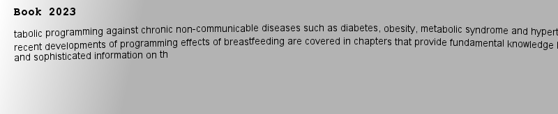Titlebook: Breastfeeding and Metabolic Programming; Özlem Naciye Şahin,Despina D. Briana,Gian Carlo Di Book 2023 The Editor(s) (if applicable) and Th |