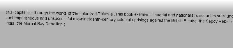 | 期刊全称 | British Empire and the Literature of Rebellion | | 期刊简称 | Revolting Bodies, La | | 影响因子2023 | Sheshalatha Reddy | | 视频video | http://file.papertrans.cn/192/191036/191036.mp4 | | 发行地址 | Makes an original intervention into the influence of biopolitics on the development of labor in colonial contexts.Examines the spread of imperial capitalism through the works of the colonized.Takes a | | 图书封面 |  | | 影响因子 | .This book examines imperial and nationalist discourses surrounding three contemporaneous and unsuccessful mid-nineteenth-century colonial uprisings against the British Empire: the Sepoy Rebellion (1857) in India, the Morant Bay Rebellion (1865) in Jamaica, and the Fenian Rebellion (1867) in Ireland. In reading these three mid-century rebellions as flashpoints for the varying yet parallel attempts by imperialist colonialists, nationalists, and socialists to transform the oppressed colonized worker (the subjected laborer) into one whose identity is created and limited by labor (a laboring subject), this book also tracks varying modes of resistance to those attempts in all three colonies. In drawing from a range of historical, literary, and visual sources outside the borders of the Anglophone literary canon, this book contends that these texts not only serve as points of engagements with the rebellions but also constitute an archive of oppression and resistance.. | | Pindex | Book 2017 |