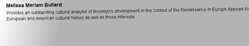 | 期刊全称 | Brooklyn’s Renaissance | | 期刊简称 | Commerce, Culture, a | | 影响因子2023 | Melissa Meriam Bullard | | 视频video | http://file.papertrans.cn/192/191300/191300.mp4 | | 发行地址 | Provides an outstanding cultural analysis of Brooklyn‘s development in the context of the Renaissance in Europe.Appeals to scholars of European and American cultural history as well as those intereste | | 图书封面 |  | | 影响因子 | This book shows how modern Brooklyn’s proud urban identity as an arts-friendly community originated in the mid nineteenth century. Before and after the Civil War, Brooklyn’s elite, many engaged in Atlantic trade, established more than a dozen cultural societies, including the Philharmonic Society, Academy of Music, and Art Association. The associative ethos behind Brooklyn’s fine arts flowering built upon commercial networks that joined commerce, culture, and community. This innovative, carefully researched and documented history employs the concept of parallel Renaissances. It shows influences from Renaissance Italy and Liverpool, then connected to New York through regular packet service like the Black Ball Line that ferried people, ideas, and cargo across the Atlantic. Civil War disrupted Brooklyn’s Renaissance. The city directed energies towards war relief efforts and the women’s Sanitary Fair. The Gilded Age saw Brooklyn’s Renaissance energies diluted by financial and political corruption, planning the Brooklyn Bridge and consolidation with New York City in 1898. | | Pindex | Book 2017 |