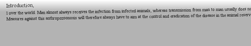 Marx and the Division of Labourl over the world. Man almost always receives the infection from infected animals, whereas transmission from man to man usually does not occur. Measures against this anthropozoonosis will therefore always have to aim at the control and eradication of the disease in the animal reservoir as well. The d