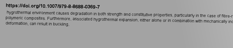 | 期刊全称 | Buckling and Postbuckling of Composite Plates | | 影响因子2023 | G. J. Turvey,I. H. Marshall | | 视频video | http://file.papertrans.cn/192/191492/191492.mp4 | | 图书封面 |  | | 影响因子 | Contributed by leading authorities in the field from around theworld, this text provides a comprehensive insight into buckling andpostbuckling. Basic theory, methods of buckling analysis and theirapplication, the effect of external variables such as temperature andhumidity on the buckling response and buckling tests are all covered. | | Pindex | Book 1995 |