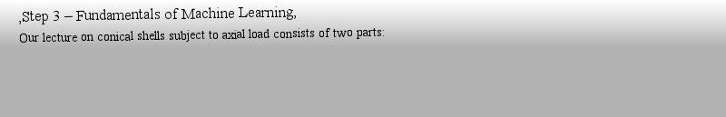 ,Step 2 – Introduction to Machine Learning, of a liquid leads to diagrams and formulas which can be used directly in the design of such shells. The margin of safety to be applied, the influence of welding stresses and the limitations on the validity of the formulas for structures with different boundary conditions are discussed.