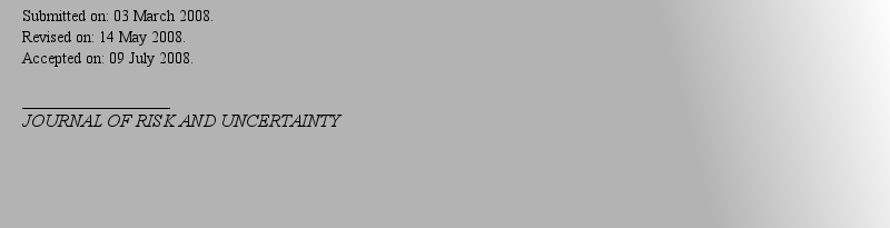 Submitted on: 25 April 2006. Revised on: 15 June 2006. Accepted on: 03 July 2006. ___________________JOURNAL OF RISK AND UNCERTAINTY