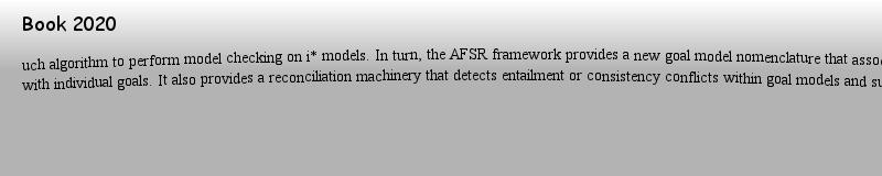 | 影响因子 | .This book discusses enterprise hierarchies, which view a target system with varying degrees of abstraction. These requirement refinement hierarchies can be represented by goal models. It is important to verify that such hierarchies capture the same set of rationales and intentions and are in mutual agreement with the requirements of the system being designed. The book also explores how hierarchies manifest themselves in the real world by undertaking a data mining exercise and observing the interactions within an enterprise. The inherent sequence-agnostic property of goal models prevents requirement analysts from performing compliance checks in this phase as compliance rules are generally embedded with temporal information. The studies discussed here seek to extract finite state models corresponding to goal models with the help of model transformation. The i*ToNuSMV tool implements one such algorithm to perform model checking on i* models. In turn, the AFSR framework provides a new goal model nomenclature that associates semantics with individual goals. It also provides a reconciliation machinery that detects entailment or consistency conflicts within goal models and suggests corre |