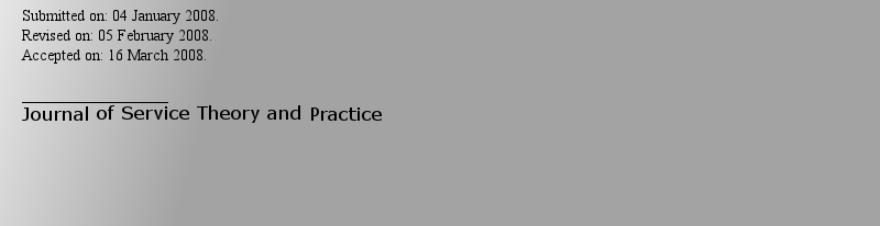 | 期刊全称 | Journal of Service Theory and Practice | | 期刊简称 | J SERV THEOR PRACT | | 影响因子2024 | 3.908 | | 视频video | http://file.papertrans.cn/20/19251/19251.mp4 | | ISSN | 2055-6225 | | eISSN | 2055-6225 | | 出版商 | EMERALD GROUP PUBLISHING LTD | | 发行地址 | Floor 5, Northspring 21-23 Wellington Street, Leeds, England, W YORKSHIRE, LS1 4DL | | 学科分类 | 1.Social Sciences Citation Index (SSCI)--Business | Management; 2.Current Contents Social And Behavioral Sciences--Management; 3.Essential Science Indicators--Economics & Business; | | 出版语言 | English |