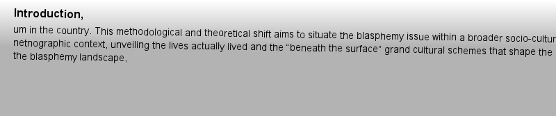 | 期刊全称 | Beyond the Law: Living Blasphemy in Pakistan | | 期刊简称 | Ethnography of Munda | | 影响因子2023 | Muhammad Bilal | | 视频video | http://file.papertrans.cn/193/192660/192660.mp4 | | 发行地址 | Examines the social life of blasphemy in Pakistan.Analyzes the components and powers that make up religious and cultural life-worlds in Pakistan.Explores how ordinary Pakistani Muslims live everyday l | | 学科分类 | Contemporary Anthropology of Religion | | 图书封面 |  | | 影响因子 | .The book embarks on a journey into the intricate landscape of blasphemy in Pakistan amid a rising tide of blasphemy accusations, public lynchings, and contentious blasphemy laws. Challenging conventional perspectives, this book delves beyond legal and religious confines, offering an ethnography of the mundane as a secular reading and a grand existential scheme to highlight how blasphemy laws and religious prisms often fail to capture the essence of the blasphemy dilemma in Pakistan. The author offers an insightful re-evaluation of the blasphemy issue, addressing its multifaceted definition, the motivations driving intentional blasphemous acts and frivolous accusations, the authority to punish alleged offenders, the paradox of religious violence, and the emergence of mediated expressions and virtual negotiation of blasphemy. Through meticulous grassroots analysis of ordinary Pakistanis’ perspectives, the book offers pragmatic policy solutions for blasphemy issues, presenting unorthodox insights into Pakistan, its diverse populace, and the ever-evolving sensibilities of Islam and societal dynamics in both local and global contexts.. | | Pindex | Book 2024 |