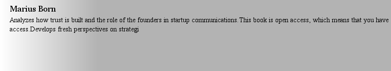 Titlebook: Building Trust in Startup Communication; Exploring the Interp Marius Born Book‘‘‘‘‘‘‘‘ 2024 The Editor(s) (if applicable) and The Author(s) |