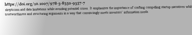 Titlebook: Building Trust in Startup Communication; Exploring the Interp Marius Born Book‘‘‘‘‘‘‘‘ 2024 The Editor(s) (if applicable) and The Author(s) |