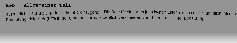 | 期刊全称 | Bürgerliches Recht | | 期刊简称 | Eine Einführung in d | | 影响因子2023 | Thomas Zerres | | 视频video | http://file.papertrans.cn/193/192872/192872.mp4 | | 发行地址 | Sehr gute didaktische Aufbereitung des Stoffes.Anschauliche Abbildungen und praktische Beispiele.Besonders geeignet zur Einführung in das BGB.Includes supplementary material: | | 学科分类 | Springer-Lehrbuch | | 图书封面 |  | | 影响因子 | Eine Vielzahl von Beispielen aus der Praxis und einprägsame Illustrationen machen in einschlägiger Erläuterung vertraut mit den ersten drei Büchern des Bürgerlichen Gesetzbuches sowie den Grundzügen der Zivilprozessordnung. Den Studenten an Universitäten, Fachhochschulen, Wirtschafts- und Verwaltungsakademien sowie Industrie- und Handelskammern bietet sich eine doppelt wertvolle Hilfe: Zur Einarbeitung in das Bürgerliche Recht bei Studienbeginn und vor dem Examen bzw. vor einer Prüfung zur Wiederholung. Das Buch basiert auf Erfahrungen des Autors aus seiner Lehrtätigkeit. Die nun vorliegende vierte Auflage ist umfassend überarbeitet und - vor allem bedingt durch das Schuldrechtsmodernisierungsgesetz und die Zivilprozessreform - aktualisiert. | | Pindex | Textbook 20034th edition |