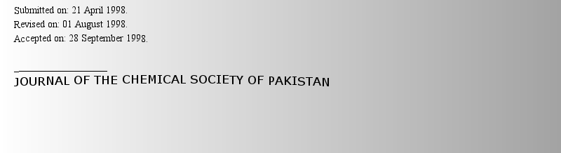 Submitted on: 10 February 2000. Revised on: 04 June 2000. Accepted on: 28 June 2000. ___________________JOURNAL OF THE CHEMICAL SOCIETY OF PAKISTAN