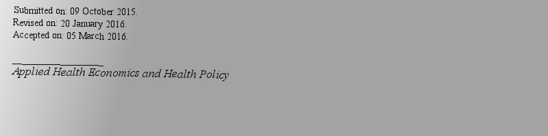 Submitted on: 01 May 2010. Revised on: 28 August 2010. Accepted on: 14 September 2010. ___________________Applied Health Economics and Health Policy