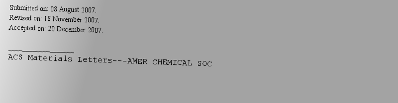 | 期刊全称 | ACS Materials Letters | | 期刊简称 | ACS MATER LETT | | 影响因子2024 | 9.697 | | 视频video | http://file.papertrans.cn/1/221/221.mp4 | | ISSN | NULL | | eISSN | 2639-4979 | | 出版商 | AMER CHEMICAL SOC | | 发行地址 | 1155 16TH ST, NW, WASHINGTON, USA, DC, 20036 | | 学科分类 | 1.Science Citation Index Expanded (SCIE)--Materials Science, Multidisciplinary; 2.Current Contents Engineering, Computing & Technology--Materials Science & Engineering; 3.Current Contents Physical, Chemical & Earth Sciences--Applied Physics/Condensed Matter/Materials Science; 4.Essential Science Indicators--Materials Science; | | 出版语言 | English |