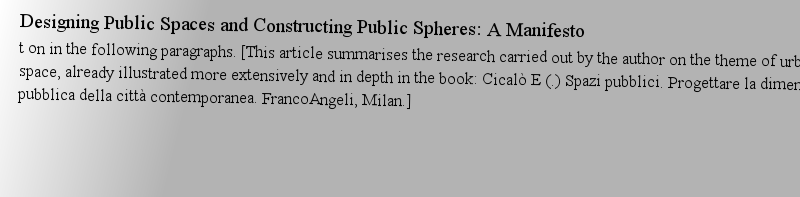Titlebook: City Project and Public Space; Silvia Serreli Book 2013 Springer Science+Business Media Dordrecht 2013 policies for urban and landscape co |